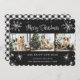 Vackra svarta och vita helgdag fotokollage-kort med snöflingor och stjärnor på framsidan och en svart och vit buffel på baksidan mönster. Anpassa enkelt det här proffsiga fotokortet med ditt foto och din helgdag namn.