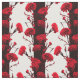 Elegant Black Red White Blommigt Rand Carnation Tyg