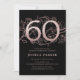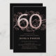 Elegant svart ro guld 60:e födelsedagsfest inbjudan Anpassadets moderna femininindesign med rosor botaniska accenter och faux glitter ro guld. Enkel perfekt för inbjudan-kort i blommigt för en snyggt kvinnlig dag firande. Anpassa med dina egna detaljer. Skrivna Zazzle-inbjudningar eller digital utskrivbar mall för omedelbar nedladdning.