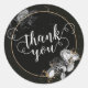 Tack i svart bakgrund med vita blommor/silver och guld-accenter. Perfekt för presenter och personliga förpackningar eller affärspaket.