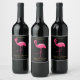 ELEGANT BLACK ROSA FLAMINGO ANPASSADE VINFLASKA ETIKETT
