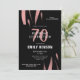 Elegant Black Rosa Watercolor 70:e Födelsedagsfest inbjudan för henne. Modern och elegant rosa vattenfärgsfärg rand i svart bakgrund. Du kan anpassa all text.