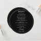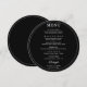 This elegant black round wedding menu features a clean minimalist layout with refined white typography, creating a timeless and sophisticated look for your special event.