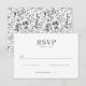 This elegant wedding RSVP card features a minimalist design with clean lines and ample white space, creating a sophisticated and uncluttered look. The black serif typography on a crisp white background ensures clarity and readability, while the customizable fields allow for personalization. Perfect for formal events, this card combines traditional elegance with modern simplicity, making it an ideal choice for couples seeking a classic yet contemporary invitation style.