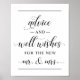 Snyggt bröllop och önskemål för den nya Mr. och Mrs. poster/teckna för bröllopsmottagningen är ett svart-vitt färg-program med modern manusext.