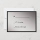 Svarskortet i bröllop matchar Elegant Black Silver Ribbon Wedding-inbjudningarna i vår butik. Det har en svart anpassningsbar på en nedbränd silver-bakgrund, som är skriven i en dramatisk svart bakgrund. En svart vridningsdesign för eleganten finns överst. Kortets baksida har samma bakgrund i silver och är lätt att markera för din svarande. Enkelt, klassigt och elegant!