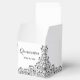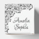 2 x 2 tum x 2 tum fack har en elegant som är perfekt utformad för svarta snurrar, blommor och löv, ditt namn överst, Quinceañera framtill och ett personligt tack på baksidan. Ändra typsnitt, färger, formuleringen och till och med bakgrunden till färg. MATCHING-inbjudningar med mera i vår butik —> http://bit.ly/2JGREwA <—