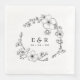Elegant Svartvitt Napkins med svarta blommar i cirkelform och ditt initialer och bröllop-datum i mitten.