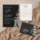 This elegant wedding invitation features a dramatic black background accented with delicate watercolor botanical florals and eucalyptus greenery for a refined, romantic look. The soft neutral blooms beautifully contrast against the dark backdrop, creating a sophisticated modern design. Stylish handwritten script highlights the couple’s names, while clean typography presents the wedding details with timeless elegance. Perfect for modern, formal, or evening weddings, this invitation combines botanical charm with contemporary styling to create a memorable first impression for your special day.