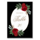 Vackra vattenfärgsprejer med blommigt med vackra rödpeonier, lush greer, eukalyptus och baby andedräkt... omger ett ovalt ram med bordsnumret i guld typografi. Riken och gröntar i blommigtarna ställer in bakgrunden till eleganten svart, vitt och guld. Lägg till egna detaljer genom att följa länken "Anpassa". Om du vill ha hjälp kan du kontakta mig via ett meddelande här på Zazzle eller e-post. susanmingaydesigns@gmail.com
