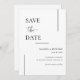 Ett förenklat och elegant svart och vitt bröllop spara datum-kort, designat med seriffer och skriptbokstäver. Anpassa med namn och framtida bröllop-detaljer.