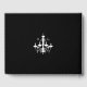 Ett minimalistiskt svart- och vitt chandelier i monogram bröllop. En enkel utformning som användor en hand plockade-silhuett av en ljuskron för att skapa ett elegant-klassiskt monogram. En lysande svart- och vit chandelierdesign med elegant- och klassskripttypografi. En elegant huggare tog upp bröllop gäst bok med modernt inslag. Det finns också möjlighet att matcha bröllopsinbjudningar och andra artiklar i kontorsartiklar.