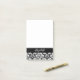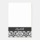 Ett svart och vitt fuktmönster för elegant dekorerar detta inlägg som antecknas. Anpassa dem med ditt namn. Designad av Blackberry Boulevard.