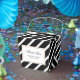 Anpassningsbarnas svarta, vita och guld-favoritboxar med en guld-grame på en svart och vit strimlad bakgrund. Tack för den här personligen kan du anpassa lådor till andra tillfälle.