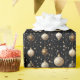 Elegant Julskvällning Papper med julprydnader i vitt, svart och guld. Guld glitter står på några av prydnadsämnena, det finns snöflingor och stjärnor.