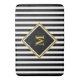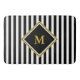 Elegant Black White Guld Monogram stripe Badrumsmatta