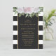 Elegant Black White Guld Stripe Rosa Blommigt Inbjudningar