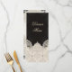 Complete your reception tablescape with this elegant Black Tie Blossom dinner menu. Designed in a refined black, ivory, and soft champagne palette, this formal wedding menu features lace-inspired detail, ornate damask texture, delicate embellishment, and a polished black-tie aesthetic. Perfect for weddings, rehearsal dinners, formal receptions, and upscale celebrations, this menu adds a romantic and sophisticated finishing touch to each place setting. The design pairs beautifully with matching invitations, RSVP cards, save the dates, and other coordinated stationery from the Black Tie Blossom collection. A timeless choice for couples who love luxurious floral style, couture-inspired detail, and classic formal elegance.