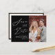 Modern svart och vit Elegant-skript Foto Simple Bröllop spara datum Announcement-vykort. Låt er familj, vänner och kolleger veta att ni har fastställt ett datum för ert bröllop firande med detta elegant, snyggt och det moderna bröllop spara datum-inbjudan. Alla texterna är i förväg ordnade så att du enkelt och snabbt kan anpassa dig med dina egna detaljer.
