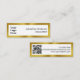 Det svarta vita affärskortet och mini- guld har en visning på framsidan som du kan ersätta med din logotyp. Två linjer visning för ditt namn och din befattning står också på framsidan. Baksidan har en QR-kodavbildning. Du måste ange din URL för att QR-koden ska fungera korrekt. På baksidan finns också tre linjer visning text för ditt mobila nummer, e-post adress och webbplats. Faux guld gräns består inte av folie.