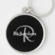 Elegant Black White och Silver Grått Monogrammed Rund Silverfärgad Nyckelring