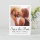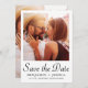 Det här spara datum meddelande-kortet i elegant bröllop har två foton och svart chic sparar datumkalligrafiskript på en vit bakgrund. Baksidan är ett fullt foto. Låt gästerna veta att du kommer att bjuda in dem till ditt kommande bröllop med detta enkla, minimalistiska foto spara datumkortet (klassiska koordinerande bröllopsinbjudningar kan skickas vid ett senare tillfälle och kan köpas separat).