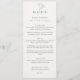 Elegant Emerald script Wedding Menu Double Sided with back message on the card