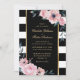 Elegant Black White Stripe Rosa Blommigt Bröllop Inbjudningar