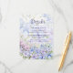 Vår eleganta blåsippsclematiskort är ett underbart sätt att fira och dela din glädjefyllda händelse. Vackra blåsippsclematisblommor strömmar över en blomsterfrostat bakgrund. Det är perfekt för vår eller sommar. Varje vacker trädgårdstematisk bröllop skulle vara perfekt