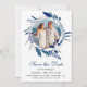 Elegant Blått Blommigt Utandning Foto Spara datum Datumet