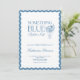 Fira den blivande bruden med tidlös elegans med denna bröllopsinbjudan "Something Blue Before I Do". Designad i en mjuk blå palett med en delikat scalloperad kant, blandar denna inbjudan klassisk charm med en modern, feminin touch. Den graciösa script-typografin kompletteras vackert av en liten blomsterbukett, som lägger till en romantisk och förfinad accent till den övergripande designen.