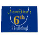 Den här enkla presentsäcksdesignen i eleganten innehåller ett personlig som "Namehär's 6e Birthday!" (med "6e" som har ett guld-liknande utseende som liknar faux/imitation) på en blå färgad. Namn är i skriptliknande gult-färgad och kan anpassas. En sådan här personlig-födelsedagspressning skulle kanske kunna användas när en present eller gåva till någon som firar sin sjätte födelsedag är ge. [~Z0000260]