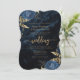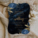 Den här inbjudan i elegant bröllop i form av hakparenteser med trendig har blåa blommigtar som är utgivna med guld faux foil grey i två hörn, på en bakgrundsbild av marinblått vattenfärgsagat. Anpassadet kombinerar guld-färgad serif, italic och handskriftsformat typsnitt. Den omvända sidan har en matchande marin blå och guld-blommigt och agate-design.