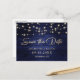 Elegant Blått rost bröllop spara datum-vykort med faux guld-skript och med en rustik träbakgrund som är försedd med sträng ljus. Du kan enkelt anpassa det här alternativet genom att spara vykortet för datum med information om bröllop, inklusive en bröllop-webbplats om du vill. Skicka ett meddelande om du vill ha anpassningsbar.