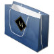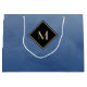 Fäst uppmärksamhet med denna stora storleka presentväska med elegant och snyggt, blått och svart monogram. Den här enkla och sofistikerade övertoningsdesignen med en modern diamantformad ram med guld gräns kan vara personlig genom att lägga till din inledande monogrammerade övertoning. Platt tryckt bild, INTE metallisk.