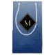 Fäst uppmärksamhet med den här eleganten och snyggtens blå och svarta monogrampresentväska. Den här enkla och sofistikerade övertoningsdesignen med en modern diamantformad ram med en gräns i guld kan vara personlig genom att lägga till din monogrammade inledning. Platt utskriven bild, INTE metallisk.