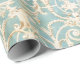 Denna elegant som slår in papper, har ett mönster av blått- och beigedamast. Perfekt för bröllop eller andra speciella tillfällen.