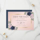 Blå- och bröllop spara datum-kort med guld ram dekorerat med ro. Matchande objekt är tillgängliga.