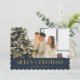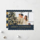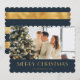 Modern blå folie och folie av guld med foto av God jul med blå och faux guld foil rand med fallande snö längst bak och ett foto på framsidan. Anpassa enkelt det här helgdag till eleganten med foton och text.