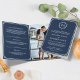 Elegant Blått och vitt Monogram Bröllop Inbjudan