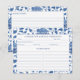 Receptkort design dekorerat med ett handmålat blått och vitt blomster mönster, inspirerat av den typ som ses på vintage blå och vita kryddburkar.