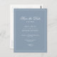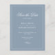 Lägg märke till bröllop i tidlös elegans med det här eleganten dammiga blåa spara-till-datum-vykortet. Den har en vacker kalligrafi som ställs mot en mjuk dammig blå bakgrund. Denna minimalistiska, icke-fotomässiga utformning kombinerar klassiskt boho charm med förfinad enkelhet, skapar det perfektens bröllop meddelande om ett modernt, sofistikerat firande.