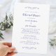 Elegant, romantisk blå och vit bröllopsrepetition middagsinbjudan design med en tidlös traditionell formell klassisk design. Kantlös finish låter dig enkelt välja din favoritpappersform för det slutliga utseendet. En genomskinlig bakgrund låter skönheten i ditt pappersval uppskattas på framsidan och baksidan av kortet. Två dekorativa krullor som var och en innehåller ett hjärta omger vackert skrivstilen. Anpassa med dina detaljer i romantisk stil och skrivstil. För bästa resultat, ersätt malldetaljer med dina egna detaljer och lämna utrymme mellan stycken som i exemplet och skriv med versal där det anges eller om ordet är ett egennamn och normalt skrivs med versal. E-post invitationsuites@gmail.com med frågor eller anpassade förfrågningar.
