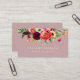 Stilblommor, fjädrar och lövverk för elegant vattenfärg skuggar bohemiska i chic av lilor, burgundy, rosor, persika och grönt med guld- geometriska brytningar på baksida, visitkortar. Bakgrundsfärg som visas i blek mauve, kan skräddarsy.