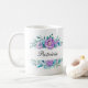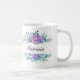 Elegant blom- monogramkaffemugg. ©Radenbrea studior på Zazzle. Härliga mjuka blommor inramar området, var du kan personifiera denna kaffemugg, genom att ändra namn till ditt eget, eller någon elses för en gåva.