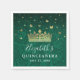 Letar du efter elegant partydekoration som matchar ditt tema för firande i guld och grönt? Designa dina egna förtrollande personliga pappersservietter med hjälp av denna enkla DIY-mall - perfekt för att lägga till ditt evenemangsnamn, datum eller ett speciellt tackmeddelande. De har originell sagokonst av Raphaela Wilson och visar lyxiga gröna akvarellrosor med accent av en falsk metallisk guld krona och magisk fjärilskonfetti. Perfekt för en förtrollad skog quinceañera (XV), en sagolik sweet 16-födelsedagsfest, en prinsessa baby shower eller en St Patricks dag bröllops shower, dessa anpassade servietter ger en sofistikerad touch till din dukning. Föredrar du en annan accentfärg? Du kan enkelt byta de falska metalliska gulddetaljerna till roséguld, rosapink, elegant silver eller valfri färg (svg-grafik) för att passa din smak. Känn dig fri att ytterligare anpassa bakgrunden genom att lägga till en vintage pergamentpappersstruktur eller genom att ändra den kalligrafiska skriften och det moderna typsnittet för att skapa en verkligt unik, kunglig inspirerad souvenir för din fest. Njut! Kategori: mis quince anos quinceanera servietter; smaragdrosa bröllopspappersservietter; och söta gröna baby shower pappersservietter för