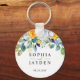 Elegant blommande gul och blå akvarellbröllop nyckelring