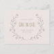 Handritad utsmyckad blomdesign på blek rosa bakgrund, sofistikerad och elegant, perfekt för landsbygd, rustikt bröllop; eller ett vintagebröllop på våren. pastell färgskala, blek lila, guldbeige och ljusrosa. Anpassa din egen klara datum postkort för ditt bröllop! Se alla matchande delar i denna lila rustika blomsterkollektion nedan.