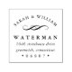 Elegant returadress gummi i frimärke har din första namn kurvformad på ett snyggt sätt över en liten blommande illustration, med din familj namn och returadress under i klassiskt block och kursiv stil.