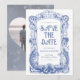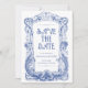 Elegant Blommig Barock Blå Kolumn Bröllop Spara Datumet